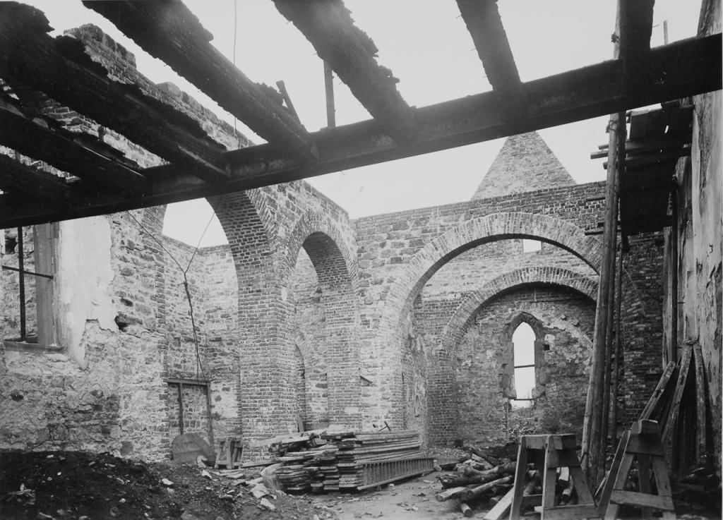 • am 10.09.1944 durch Luftangriff bis auf Umfassungsmauern ausgebrannt
