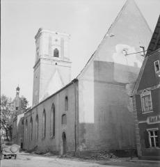 - 27. April 1945: bei Artilleriebeschuß Kirchturm bis auf Reste der Außenmauer zerstört, Kuppel und Chorgewölbe eingestürzt, Dachstuhl und Teile der Ausstattung verbrannt