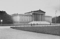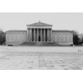 • Tempelfassade auf hohem Stufensockel antwortet auf die Front der gegenüberliegenden Glyptothek