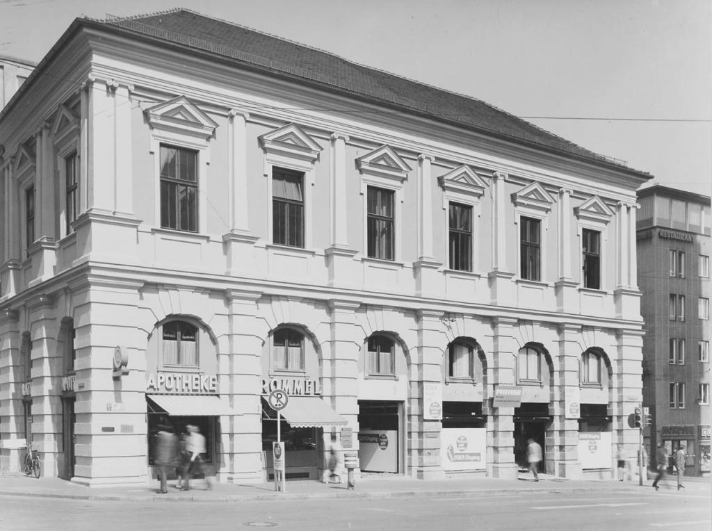 • zweistöckiger Walmdachbau, das Untergeschoss durch Bogen geöffnet