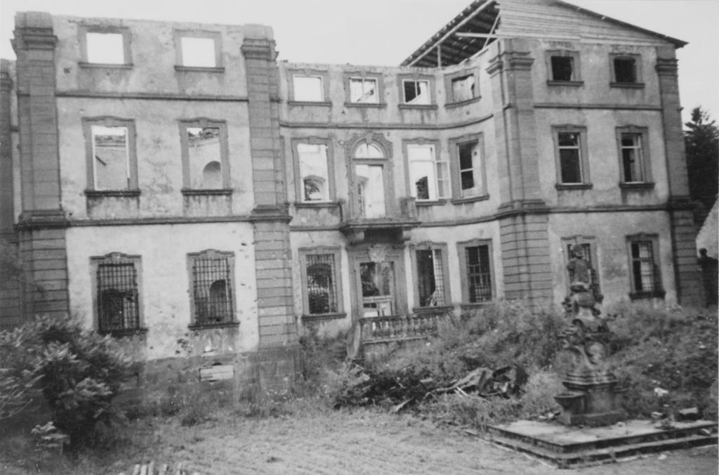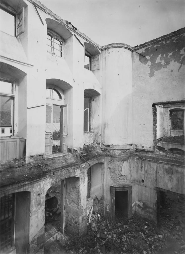 • 3. April 1945: nach Artilleriebeschuss bis auf die Außen- und Tragmauern ausgebrannt