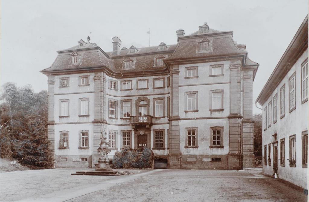 • 1725 - 1728: von Balthasar Neumann errichteter Mansarddachbau mit pavillionartigen kurzen Seitenflügeln
