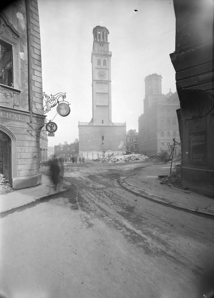 - 15./16. Februar 1944: ausgebrannt, die Bekrönung vernichtet, das Mauerwerk teilweise geborsten