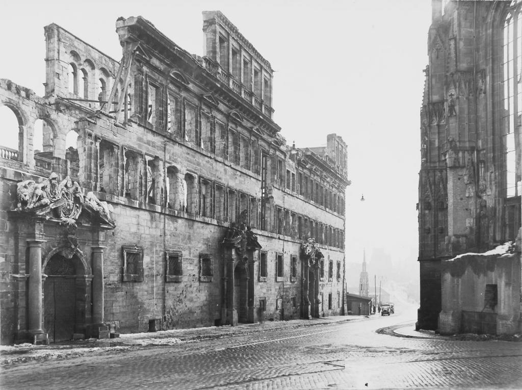 - vom Beheimschen Trakt Ratsstubenfassade teilweise eingestürzt