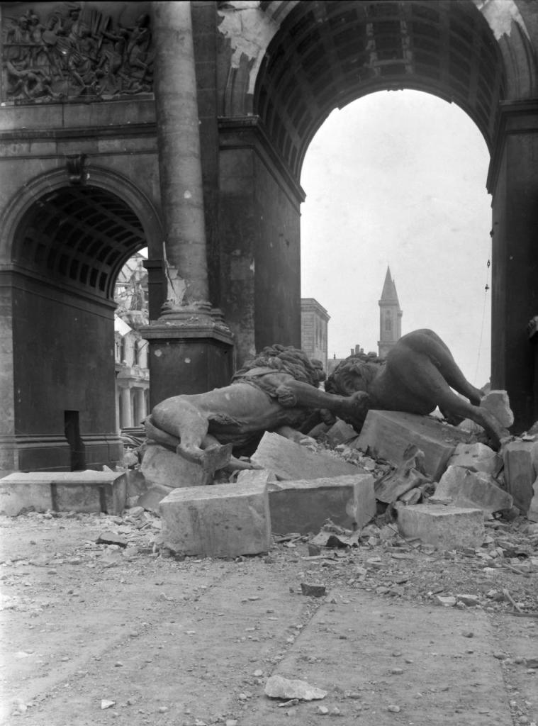 - Juli 1944: durch Sprengbomben Attika schwer beschädigt, Quadriga herabgestürzt, plastischer Schmuck teilweise zerstört