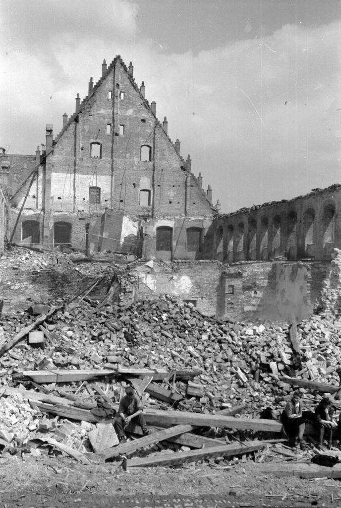 - 11. und 19. April 1945: durch Bomben bis auf Teile der Außenmauern zerstört