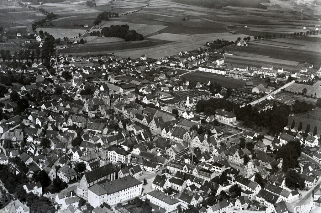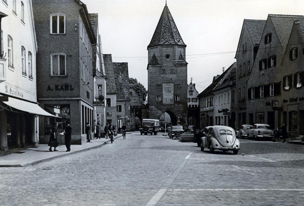 Am 28./29.04.1945 wurde die Stadt von US-Truppen nach mehreren Tieffliegerangriffen und Artilleriebeschuss eingenommen. Nach 1945 strömten Heimatvertriebene in die Stadt, für deren Unterbringung vor allem der soziale Wohnungsbau gefördert wurde. Neubauten wurden errichtet und bestehende Wohnhäuser ausgebaut. Am 28. Oktober 1949 stimmte der Stadtrat für einen Bebauungsplan, der auch den Erhalt des wenig zerstörten Stadtkerns zum Ziel hatte.