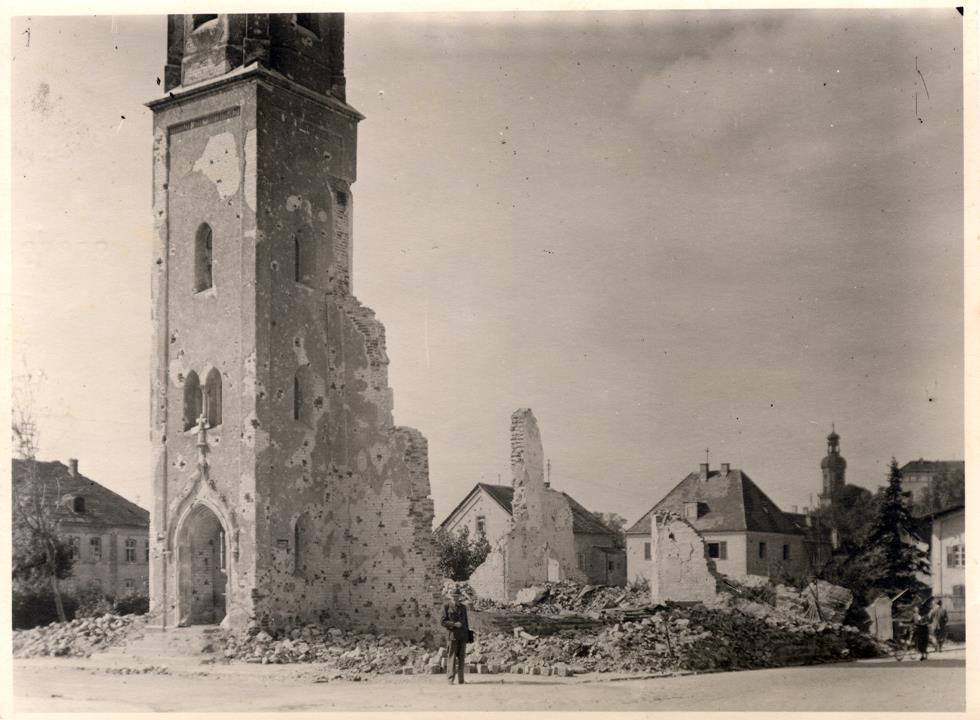 • durch Artillerie-Beschuss am 29. Apri l945: Schäden im nördlichen Teil der Stadt