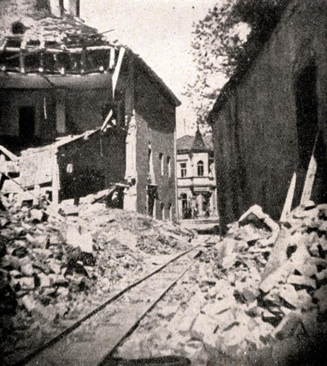 - völlige Vernichtung u.a. der Evangelischen Kirche, der „Arbeiterheimat“ in der Brunnhausgasse 4 und der Firma Steinecker
