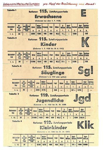 - Beginn der Lebensmittelrationierung und Ausgabe von Bezugsscheinen und -karten (siehe auch Photos)