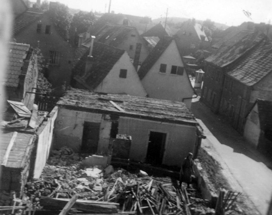 • durch US-Artilleriebeschuss ab 17. April 1945: Zerstörungen an mehreren Gebäuden