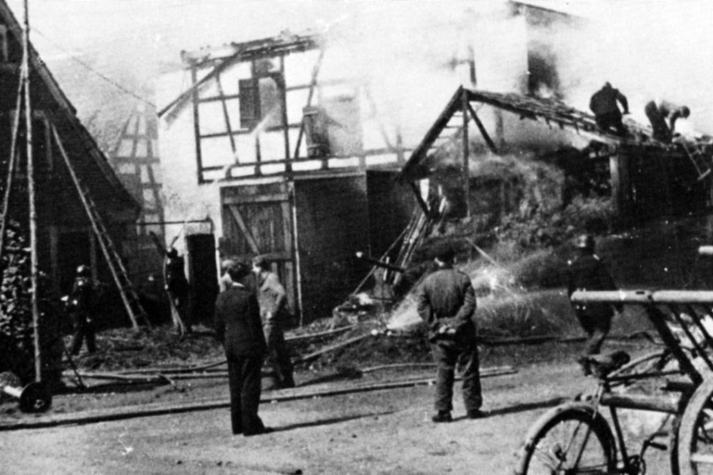 • durch Luftangriff am 17. März 1945: durch Luftmine teils erhebliche Beschädigung mehrerer Wohnhäuser und Zerstörung einer Hochspannungsleitung