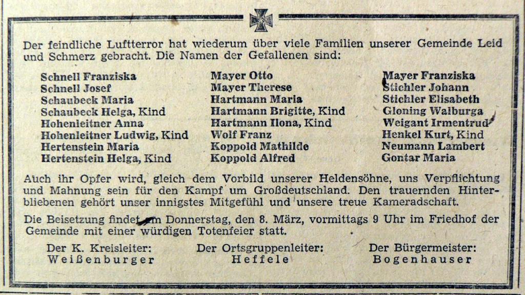 • durch Luftangriff vom 01. März 1945: 25 Tote