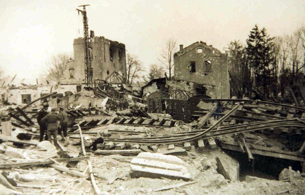 - völlige Zerstörung von 16 Haupt- und 35 Nebengebäuden