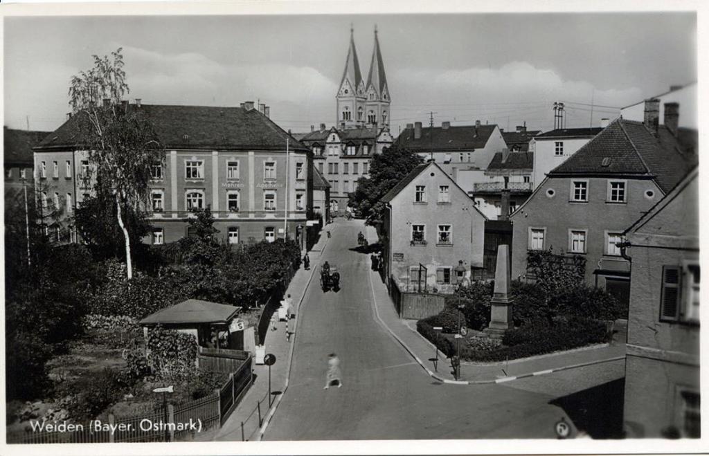 Im Februar und April 1945 wurde Weiden mehrfach aus der Luft angegriffen. 80 Menschen kamen ums Leben, 50 Wohn- und Industriegebäude wurden zerstört. Am 22.04.1945 marschierten US-Truppen ein. Nach Kriegsende wurden rund 12.000 Flüchtlinge, Heimatvertriebene und Displaced Persons in Weiden untergebracht (Gesamteinwohnerzahl: 39.941). Eine Zuzugssperre wurde verhängt. Mehr als 2.000 Wohnungen wurden gebaut, 55 Flüchtlingsbetriebe entstanden.