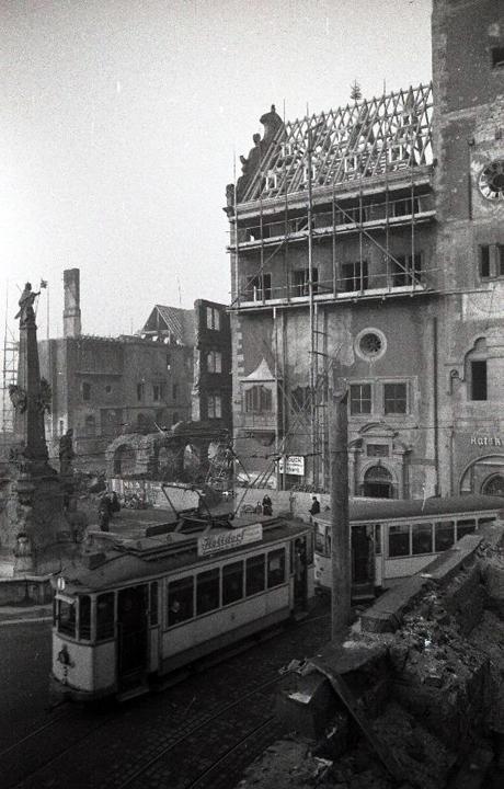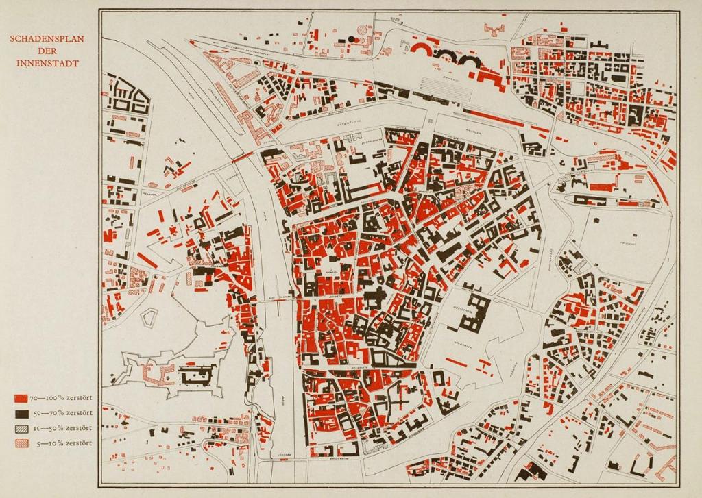• Ende 1947 Wiederaufbauplan von Regierungsbaumeister Rudolf Schlick (Bauring GmbH): städtebauliche Verbesserungen (insbesondere zur Verkehrsführung) bei gleichzeitiger Wahrung der traditionellen Struktur des Altstadtgefüges